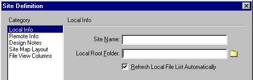 Local Root Folder: Locate the directory on your local computer where your web site is located.