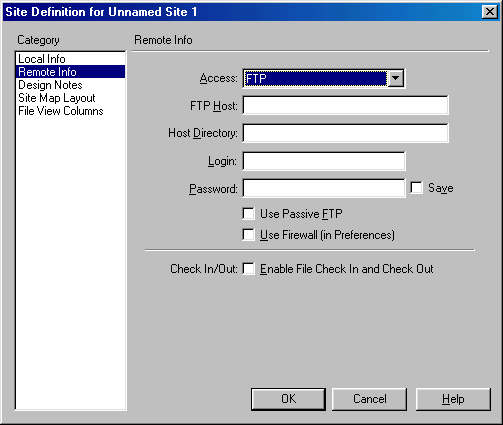 Host Directory: This is the initial server directory that you want Dreamweaver to open.